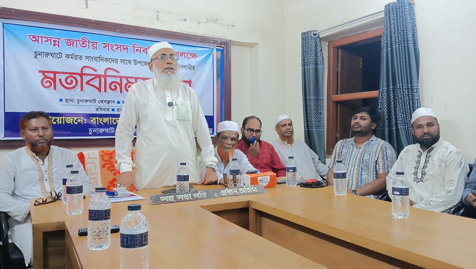 আসন্ন জাতীয় সংসদ নির্বাচন উপলক্ষে কর্মরত সাংবাদিকদের সাথে মতবিনিময় করেছে চুনারুঘাট উপজেলা জামায়াতে ইসলামী। ২১ সেপ্টেম্বর, রবিবার রাত ৮ ঘটিকায় চুনারুঘাট প্রেসক্লাব ভবনে আয়োজিত মতবিনিময় সভায় জামায়াতের উপজেলা আমীর মাওলানা ইদ্রিস আলীর সভাপতিত্বে এতে প্রধান অতিথি হিসেবে উপস্থিত ছিলেন বাংলাদেশ জামায়াতে ইসলামীর কেন্দ্রীয় মজলিসে শুরা সদস্য ও হবিগঞ্জ জেলা জামায়াতের আমীর এবং হবিগঞ্জ-৪ আসনে জামায়াতের মনোনিত এমপি পদপ্রার্থী কাজী মাওলানা মুখলিছুর রহমান।